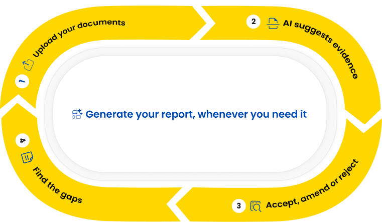 Using Intelligent Evidence, AI provides suggestions. You make the decisions. Mapping evidence become a simple, ongoing process.